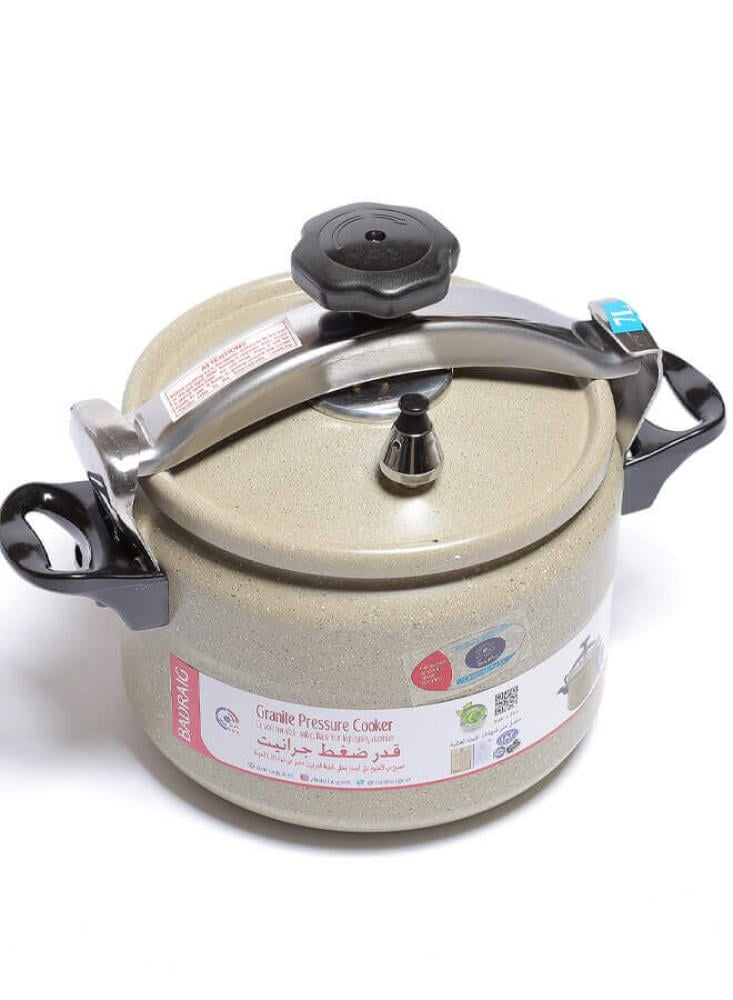 حلة ضغط جرانيت بادريق حاصلة على شهادة الجودة العالمية من TUV، مصنوعة من مواد أولية عالية الجودة، قدور ضغط بادريق تأتي بضمان 5 سنوات.